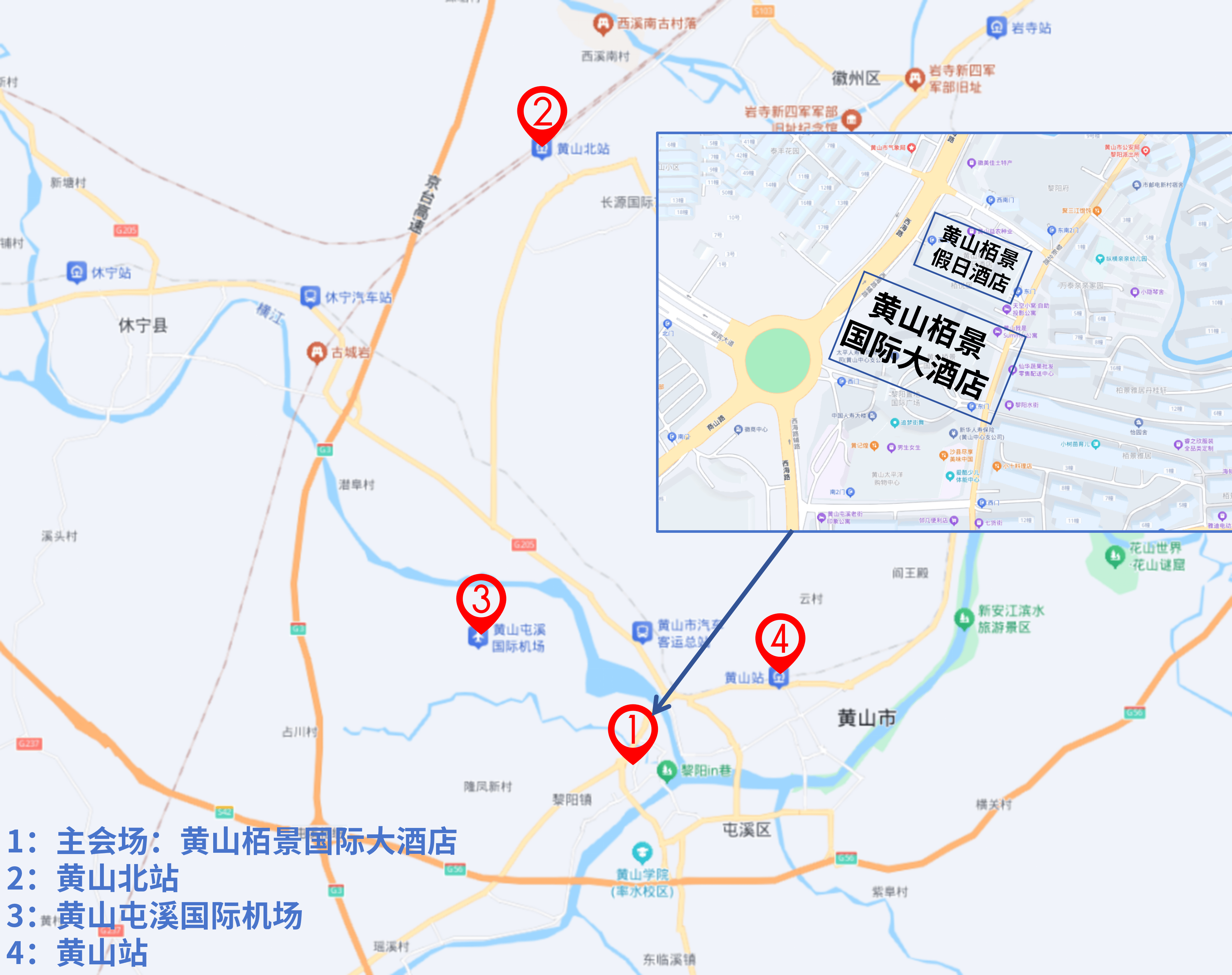 2、公交:出站步行300米5分钟至高铁北站公交站,乘坐高铁快线2路(皇冠假日酒店方向)8站(约30分钟)到达香茗酒店公交站下,步行400米6分钟到达黄山栢景国际大酒店(全程约45分钟)。